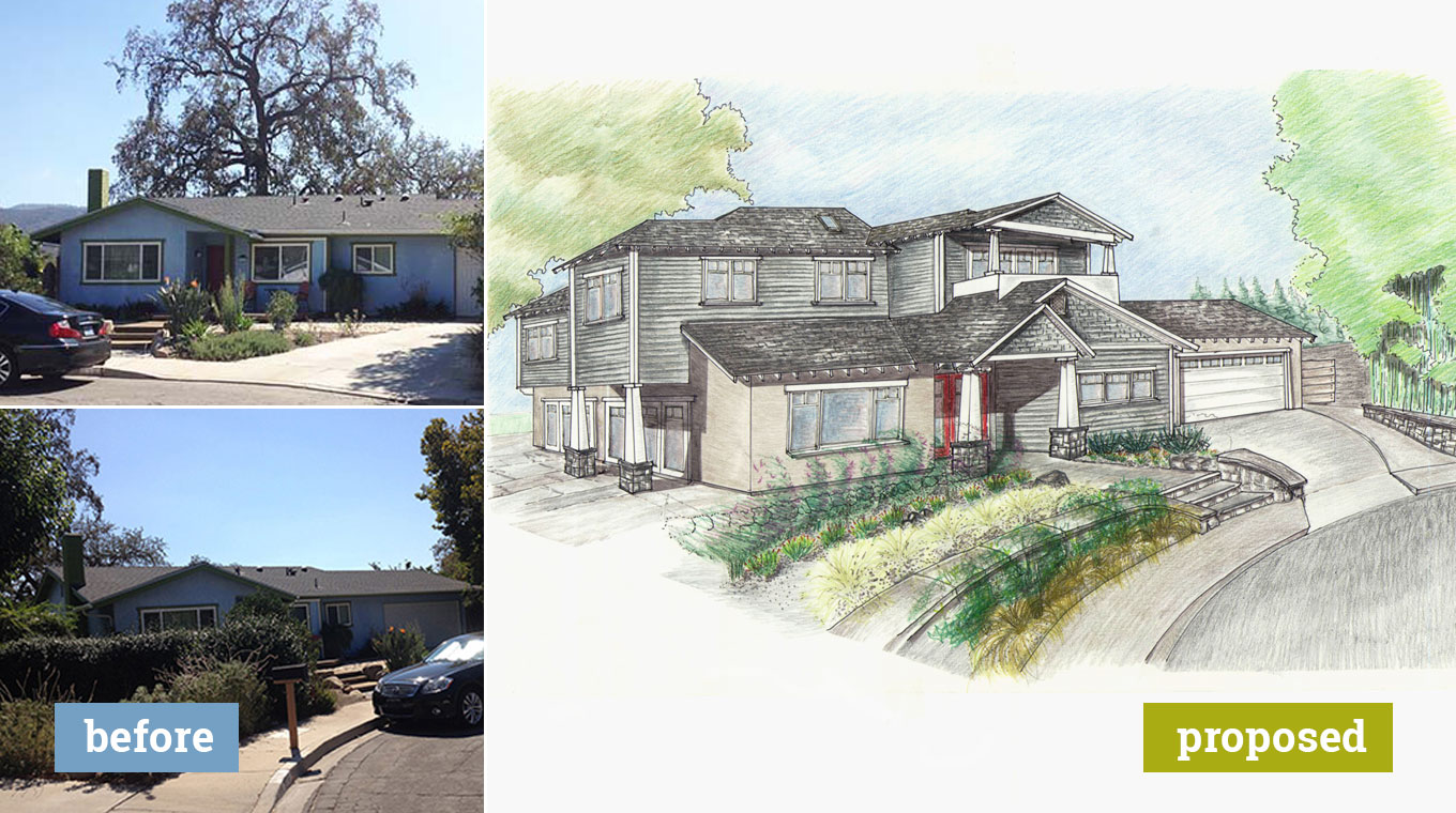 1,200 sq. ft. 2 story addition/remodel. Because of city zoning ordinances and building set back requirements, the current lot didn't allow for expansion on a single story level. Instead it lent itself to a second story addition.